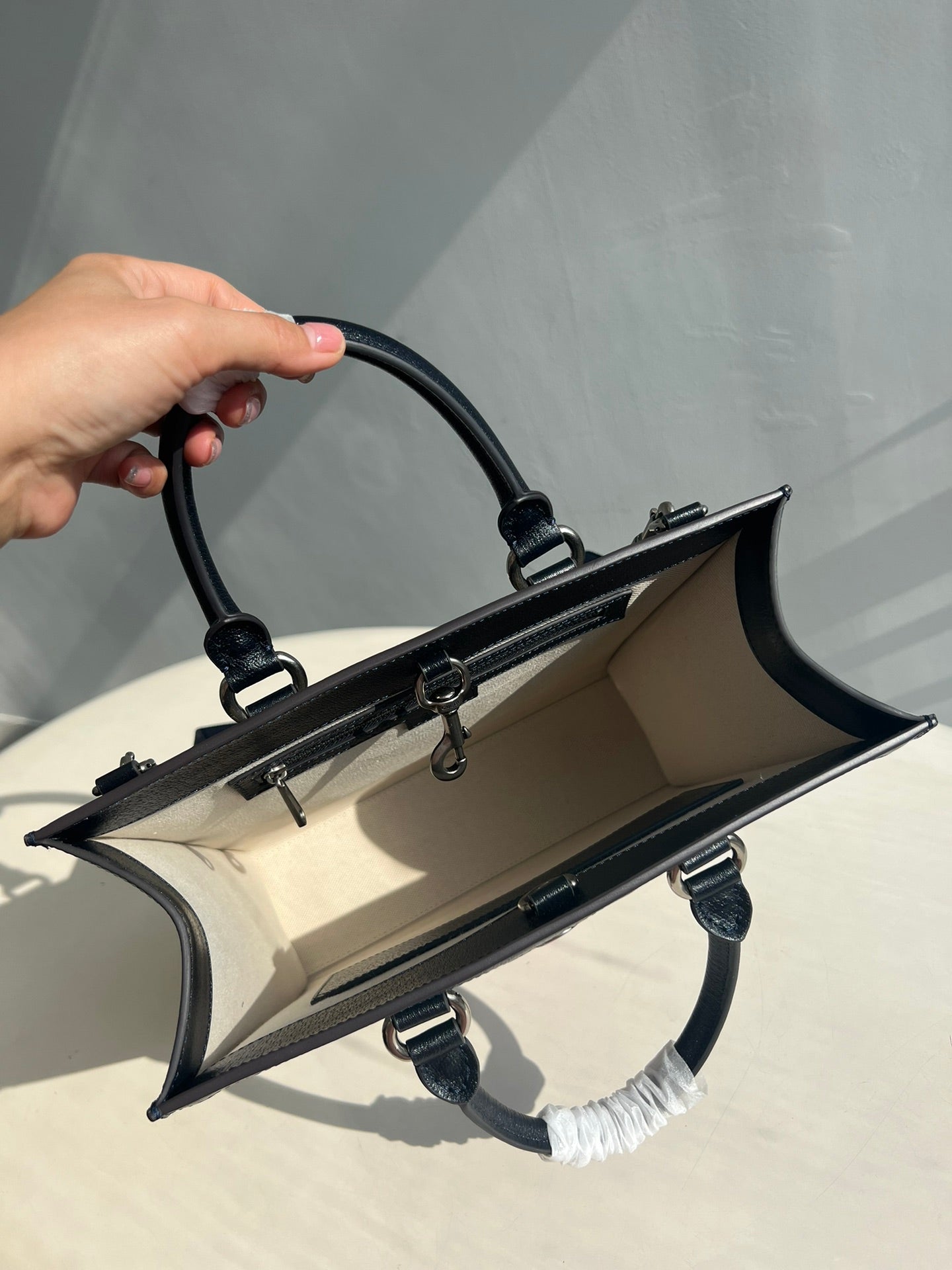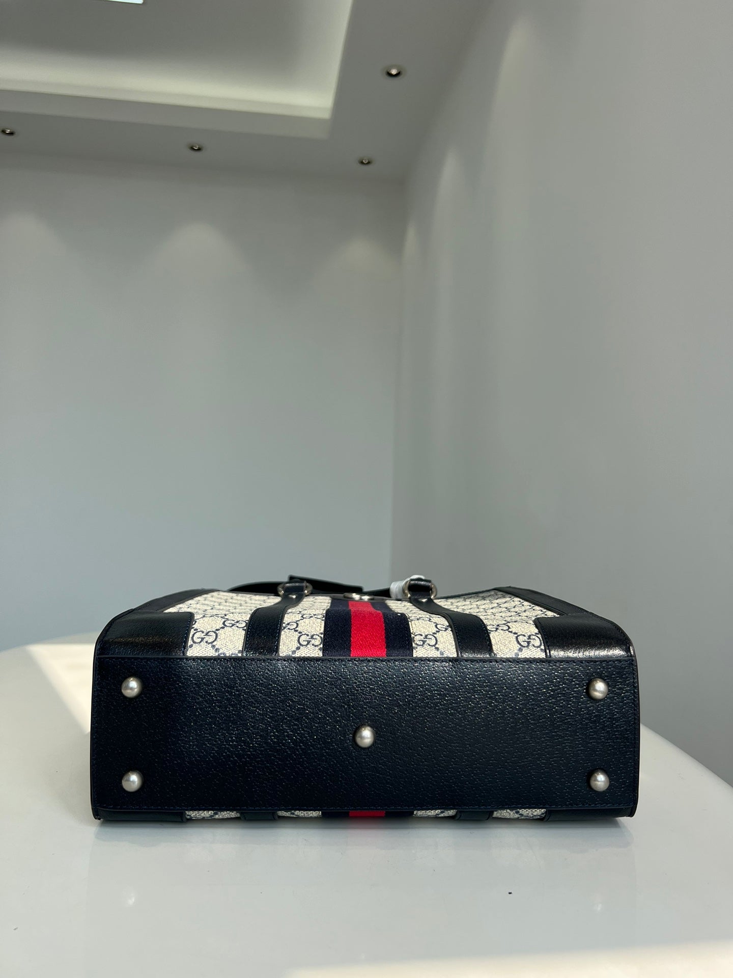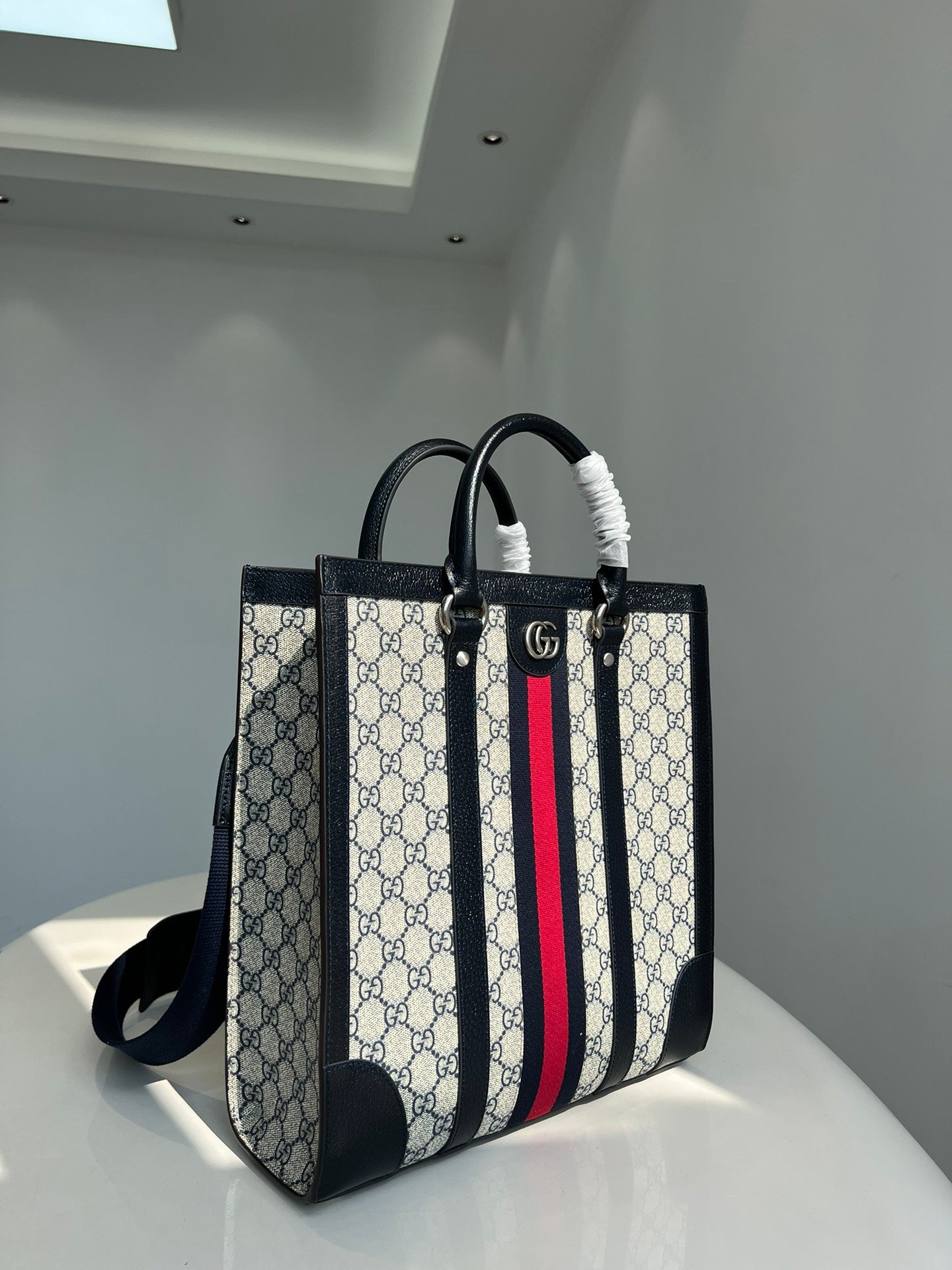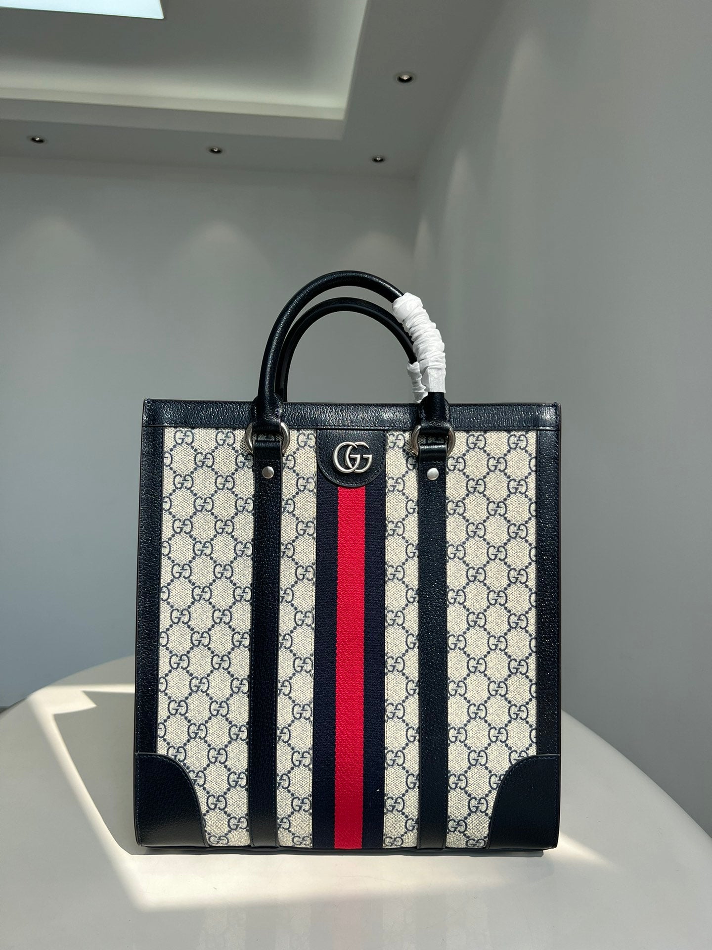 The latest Presbyterian medium men's Tote bag shopping bag, handbag single shoulder crossbody bag, the new Tote bag, a very large one, boxy bag type, very atmospheric senior, the bag body is made of canvas material, easy to collect and easy to take care of, super durable, feel very good, do not worry about scratching. And this time the canvas material is more wear-resistant and three-dimensional, the classic double G presbyched pvc with cowhide trim, a particularly simple bag. The front is matched with classic red and green belt/red and blue belt elements, vintage and fashion coexist, the workmanship is very exquisite, and the old metal color is very retro. Open hook opening and closing design, there is a zipper pocket and sticker bag inside, large space, the capacity is quite strong, there is no pressure to install a file, notebook, tablet and so on. In addition to the fixed leather handle, there is a removable and adjustable wide shoulder strap with padded shoulders. The hand and shoulder are super stylish, and the classic never goes out of style. It is very suitable for men to commute to use, it will be more fashionable than the traditional briefcase, the overall presbytery design and color matching will not be very flamboyant, very durable and fashionable atmosphere, must be arranged for your boyfriend or husband