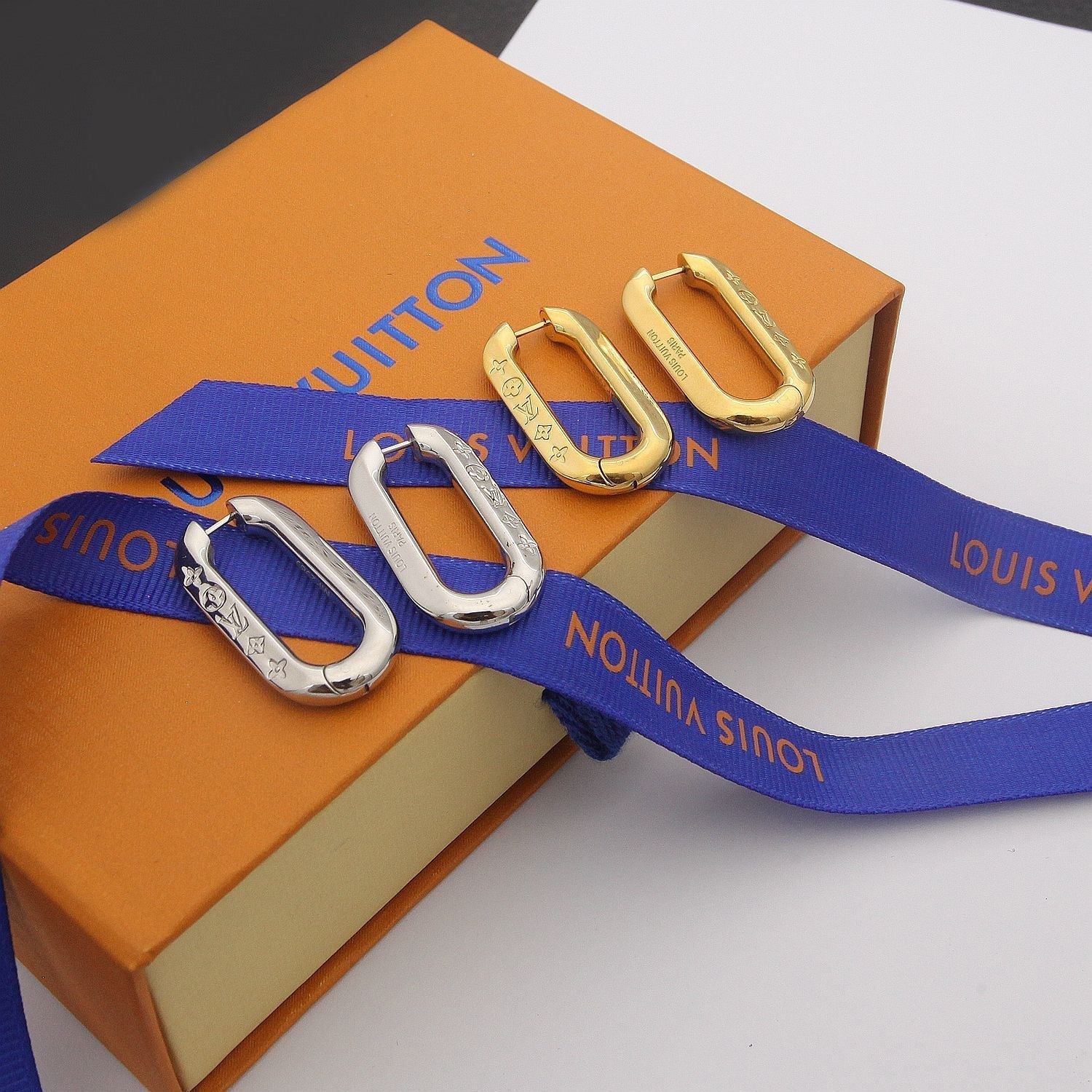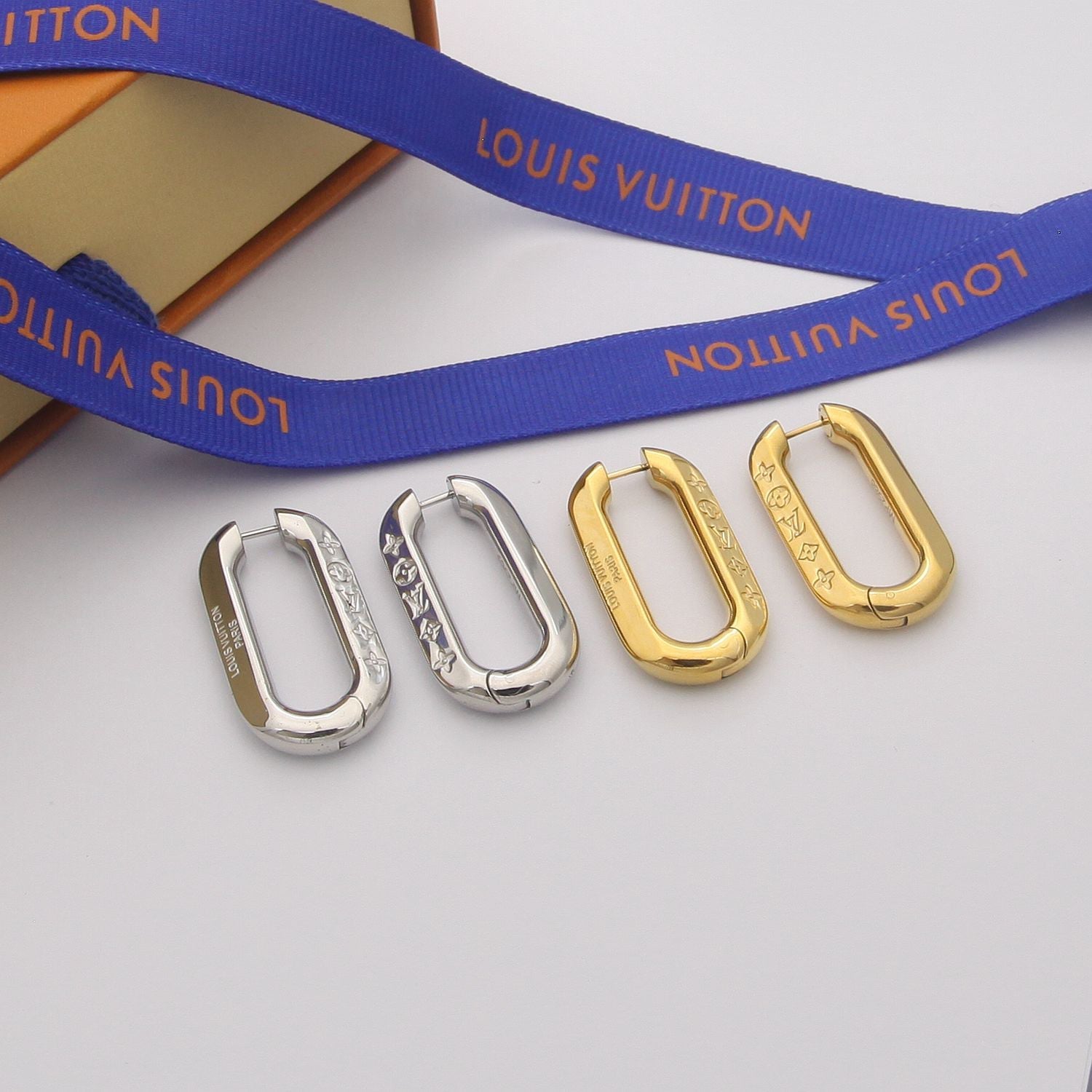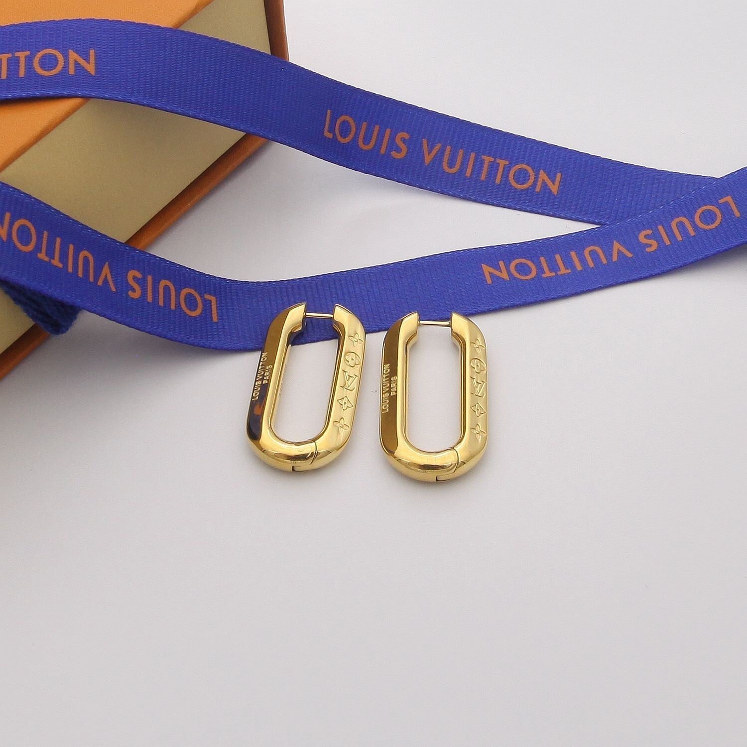 - An ingenious closure design on these Edge earrings gives the graceful impression that the hoop remains unbroken as it runs through the ear. The thick polished links skillfully engraved with Monogram motifs present a bold yet classic look. Angled faceting allows them to catch the light.