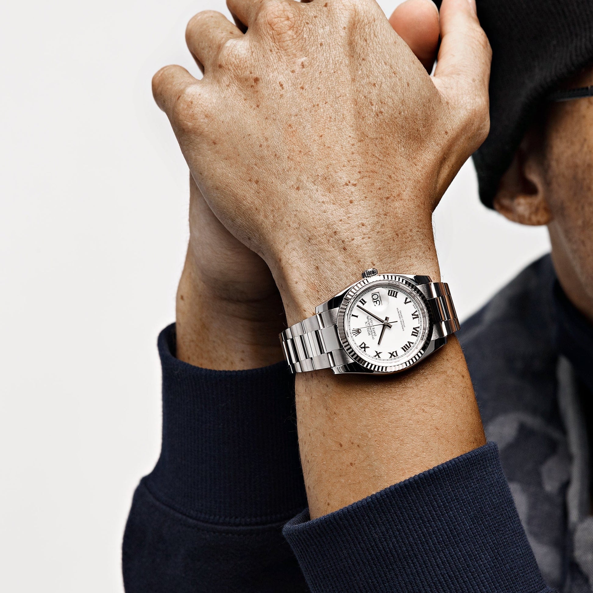 The 2025 Watch Datejust 36mm 116234 features a?stainless steel case with a striking white gold fluted bezel. Powered by an automatic movement. it boasts a white dial with the signature Cyclops lens over the date window at 3 o¡¯clock. The 2025 Watch is completed by a durable stainless steel Oyster bracelet. combining classic design with modern functionality.