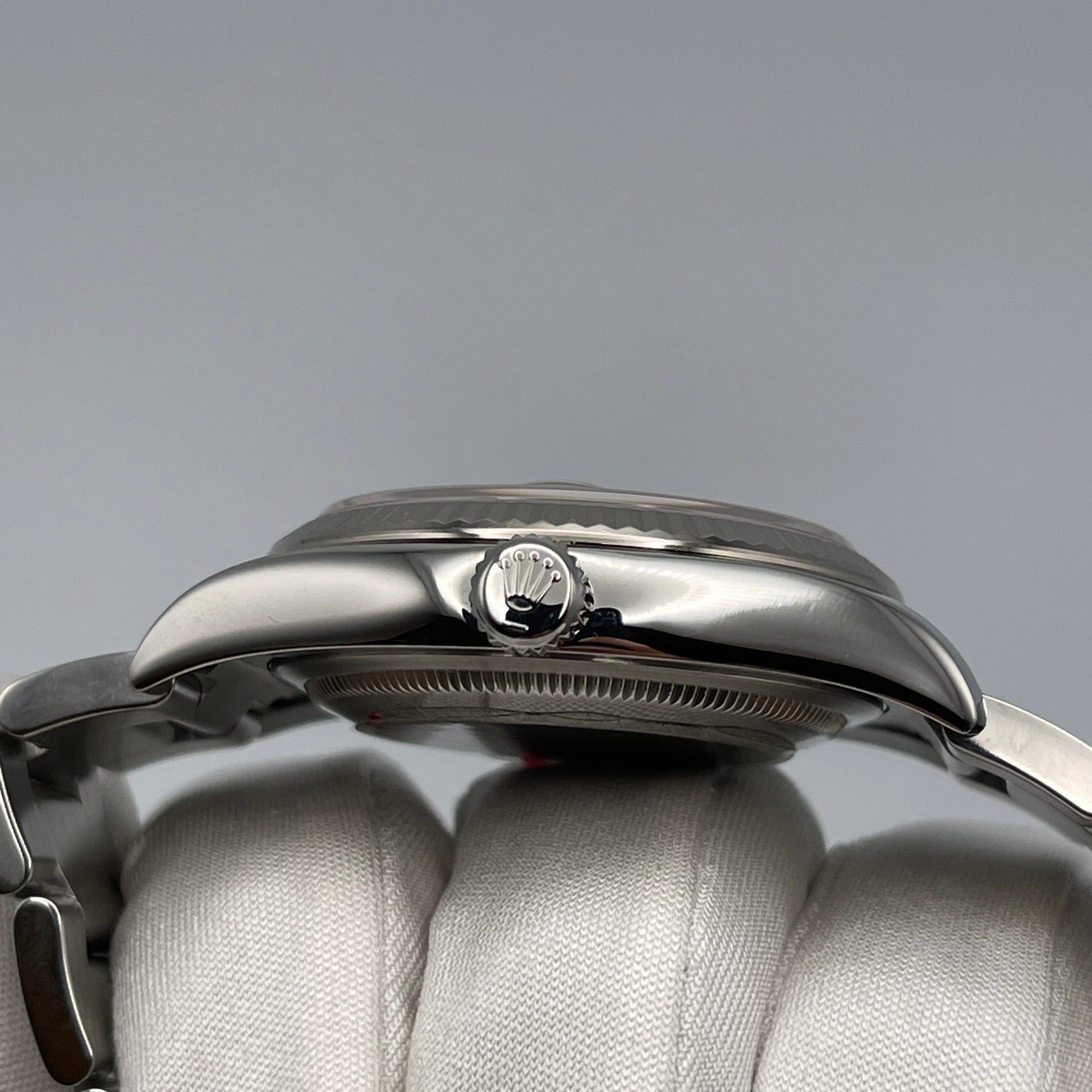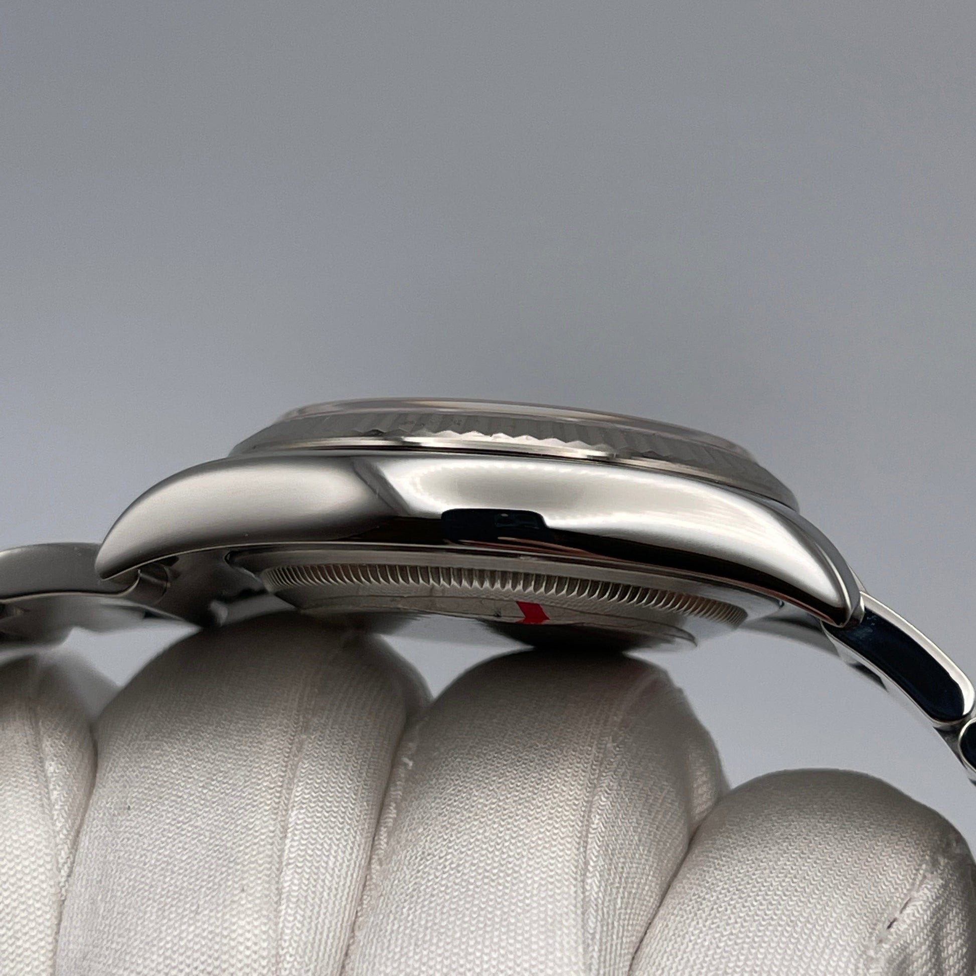 The 2025 Watch Datejust is designed with a 36mm polished Oystersteel case. highlighted by 2025 Watchs' signature fluted bezel. It features a salmon pink dial with luminous hour markers and hands. and date display at 3 o'clock protected by a scratch-resistant sapphire-crystal. On the wrist the oyster bracelet is a true beauty. which includes an oysterclasp deployment buckle with Easylink 5mm comfort extension link.