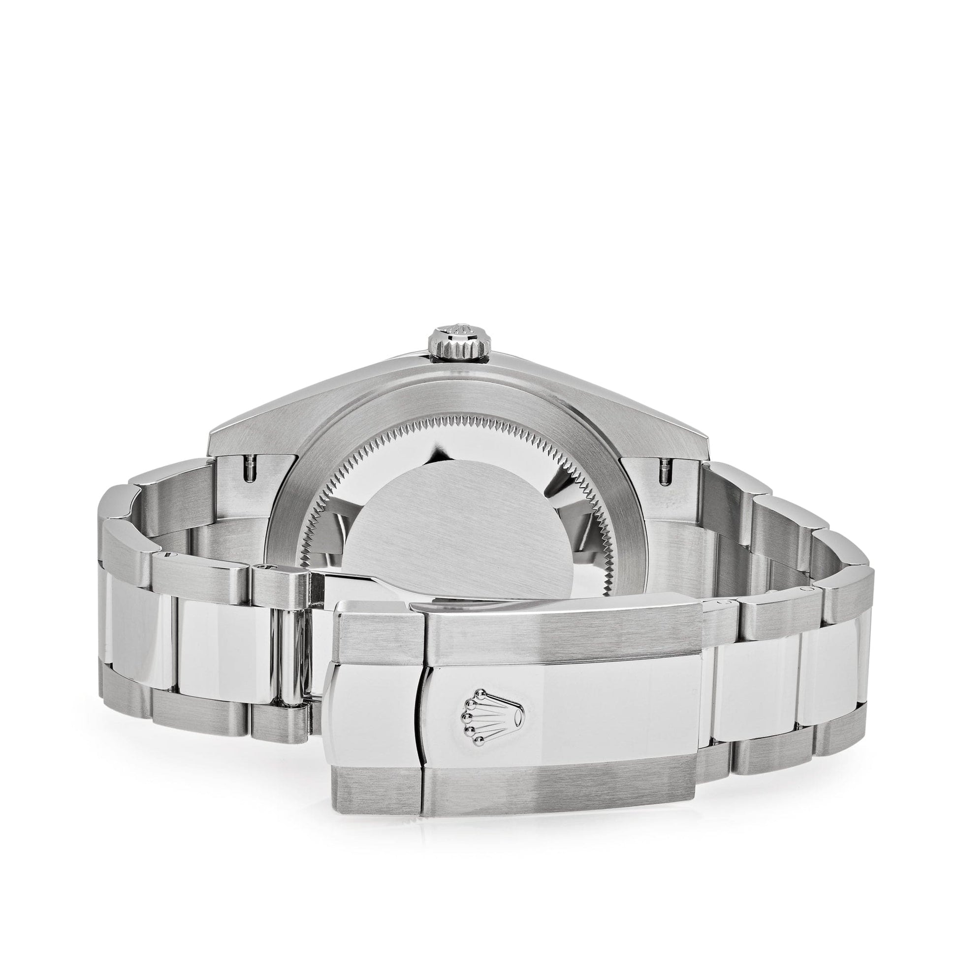 The 2025 Watch Datejust is designed with a 41mm stainless steel case. highlighted with a classic steel smooth bezel. It features a bright blue dial surrounded by steel hands and a date display at 3 o'clock. protected by a scratch-resistant sapphire crystal. On the wrist. the stainless steel oyster bracelet is a true beauty.