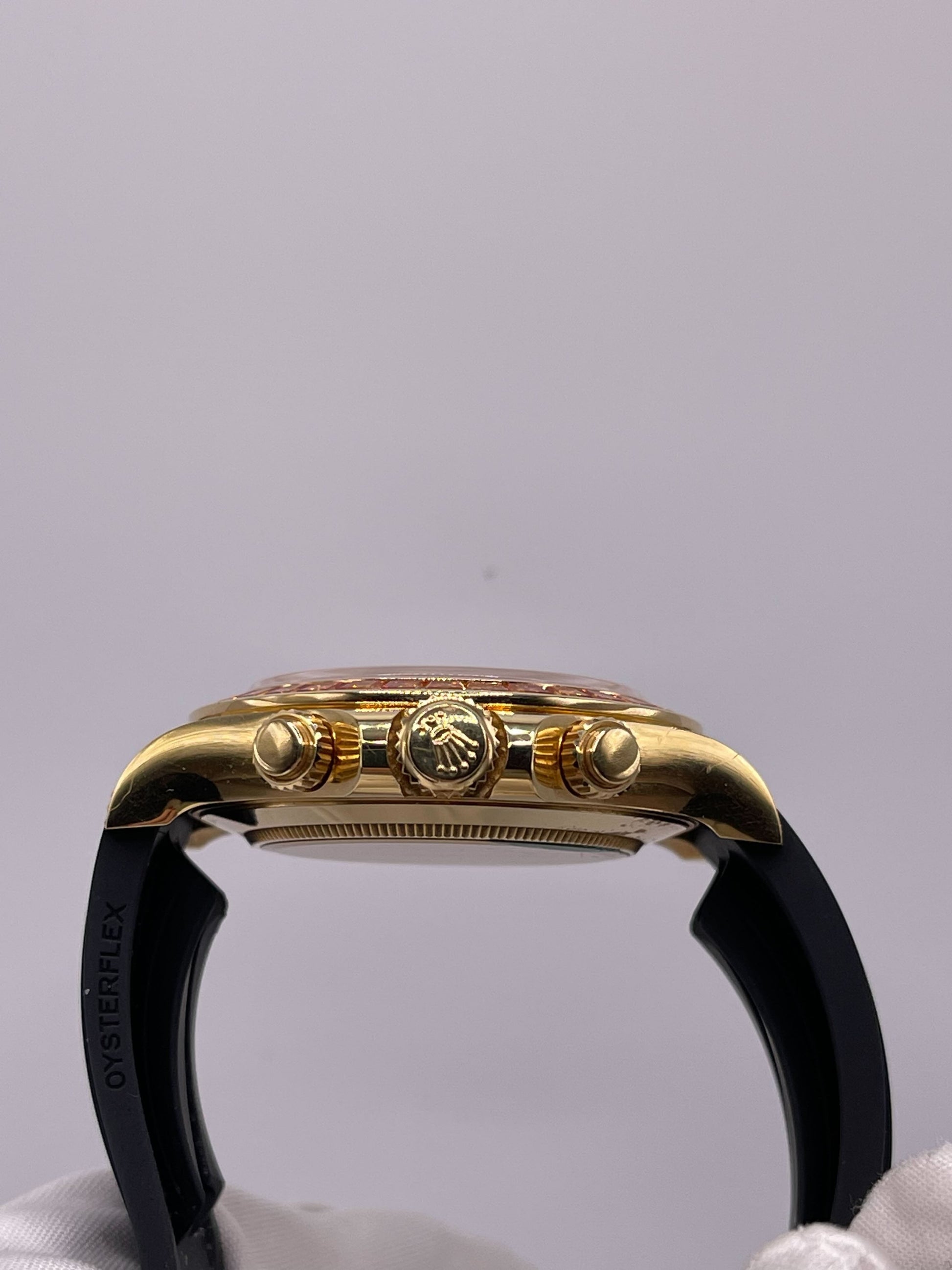 2025 Watch Daytona 116588SACO Yellow Gold Orange Sapphire Bezel Black Diamond Dial