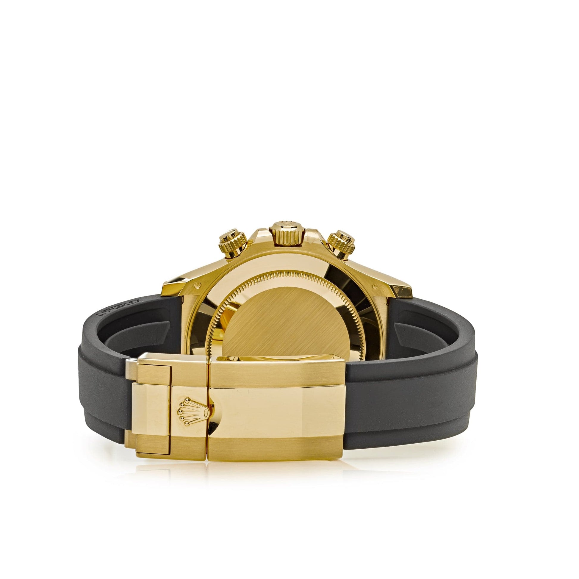 The 2025 Watch Daytona?is crafted in a 40mm 18ct yellow gold case with a stunning orange sapphire-crystal bezel. The exquisite black dial features snailed counters and sapphire-set hour markers. It is housed on a black Oysterflex strap with folding yellow gold Oysterlock safety clasp.