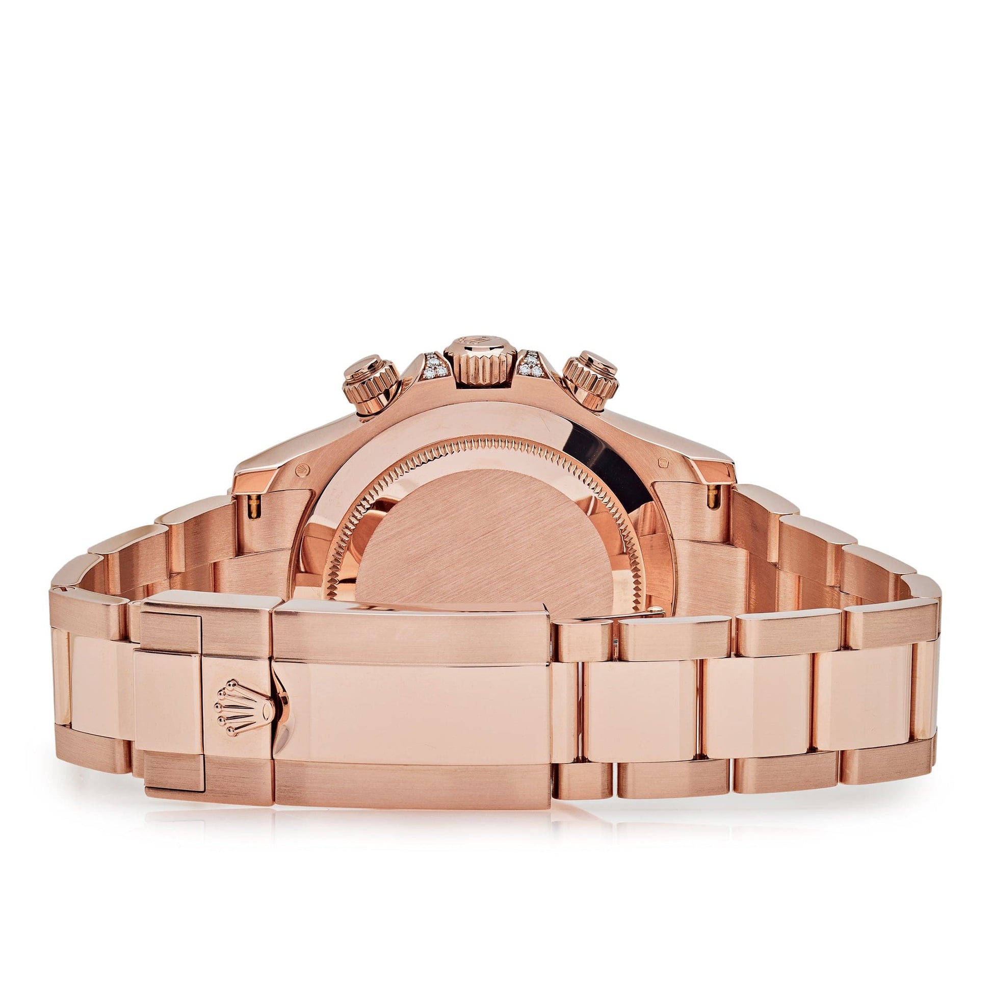 This 2025 Watch Cosmograph Daytona staple is colorful. elegant and exudes with its rainbow bezel. Designed in a 40mm 18-carat rose gold case. it features a rich black dial with snailed counters. rainbow hour markers and rose gold hands. Adding a feminine touch to this classic model. it features an ombre-effect diamond bezel with diamond accents surrounding the case. push pieces and screw-down crown. This beauty is housed on an 18ct rose gold Oyster bracelet with Oysterlock folding-clasp.