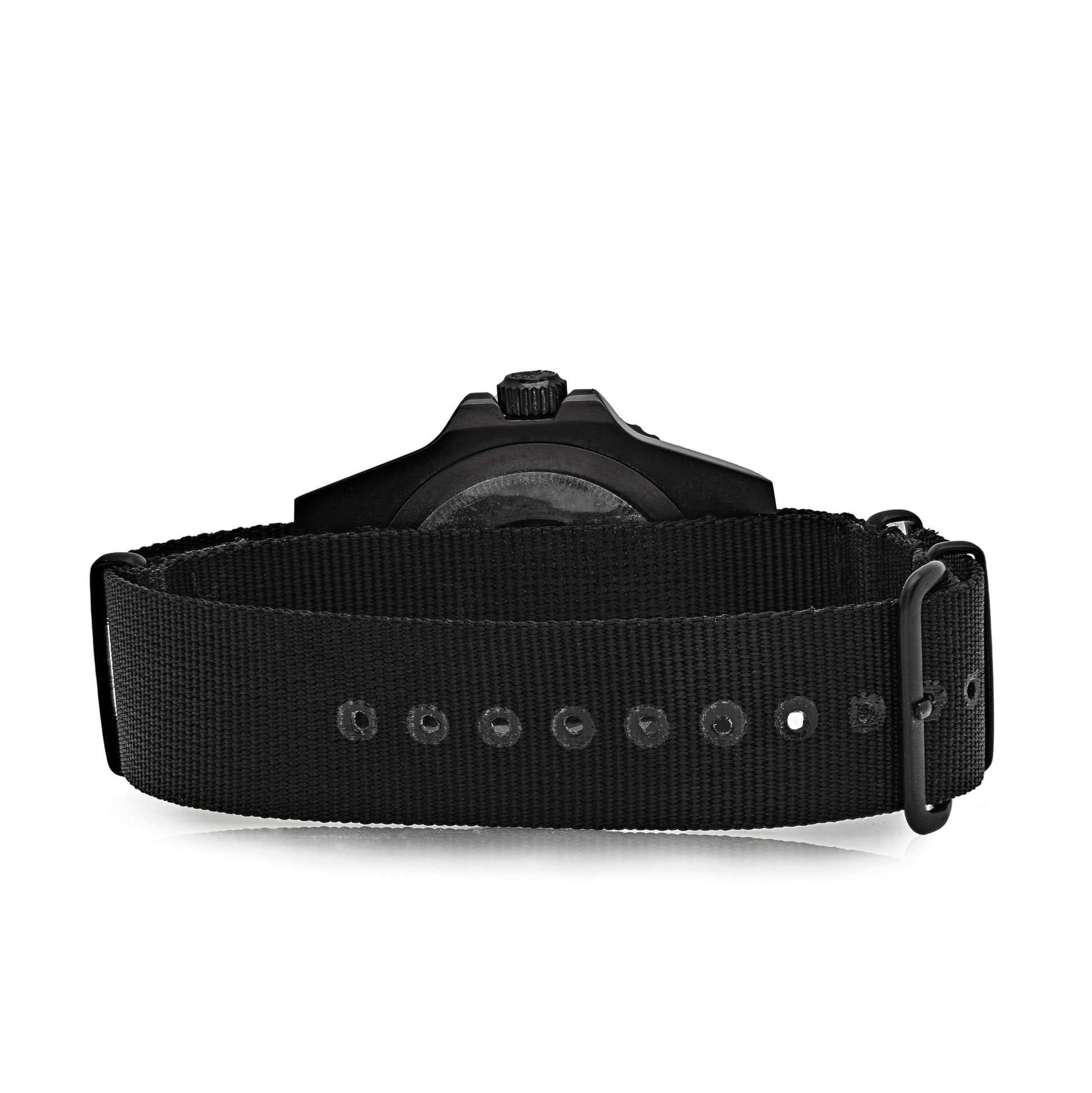 This Pro Hunter Military Stealth GMT-Master II is crafted in a stainless steel case coated in black PVD. the stealth matte coating is the most innovative black coating technology.?It has military fixed bars on the 40mm case with a black dial signed with the Pro Hunter logo in white and ¡®GMT-Master II¡¯ in green.?Finished with individually engraved casebacks (001-100) and a black military NATO strap.