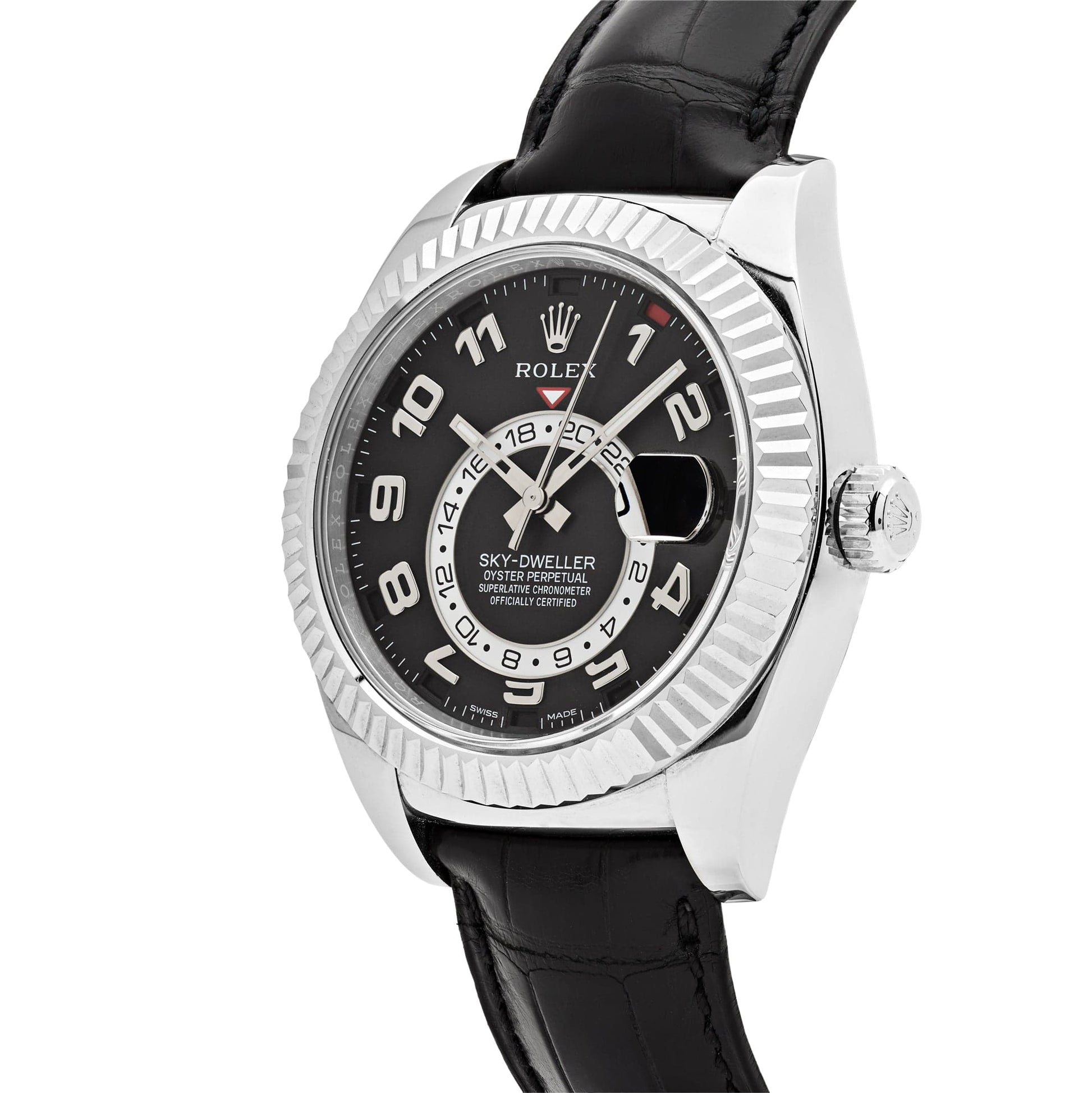 2025 Watch Sky-Dweller 326139 White Gold Black Dial Leather Strap