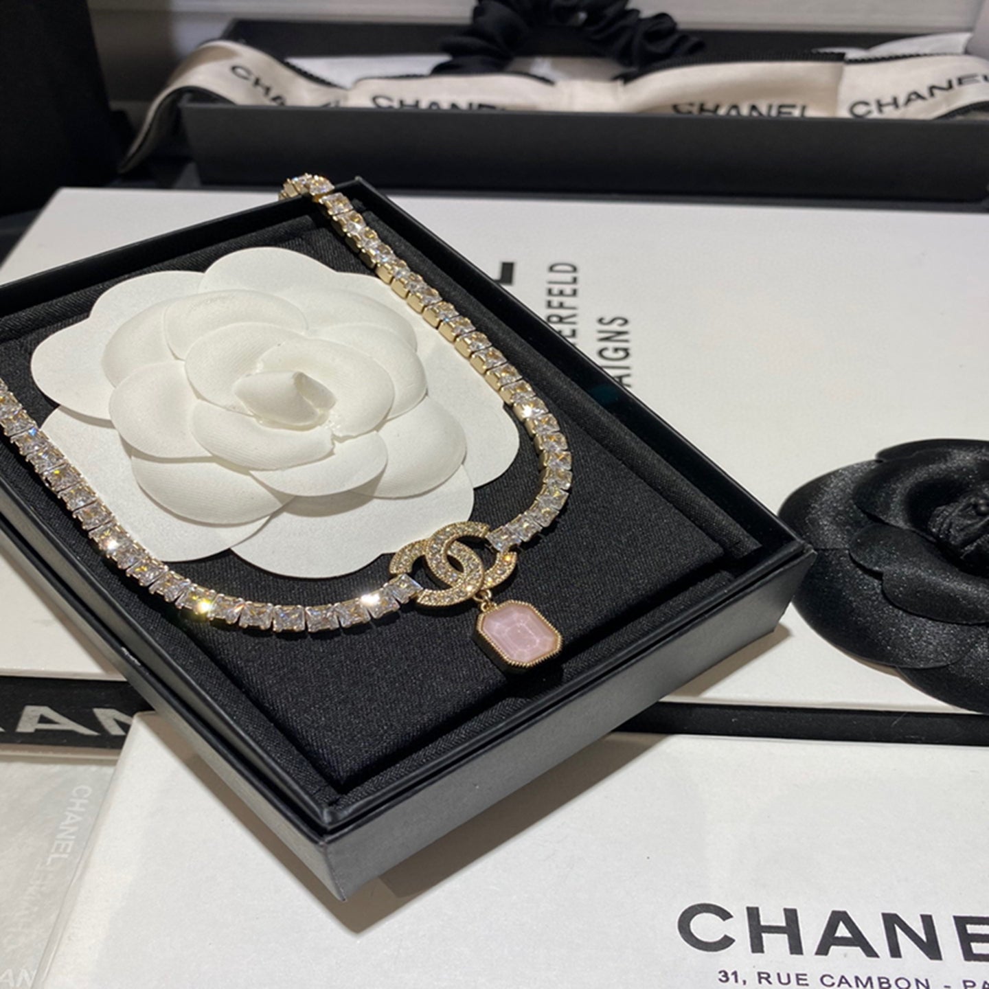 Name: Double C Square Diamond Rhinestone Pendant Necklace