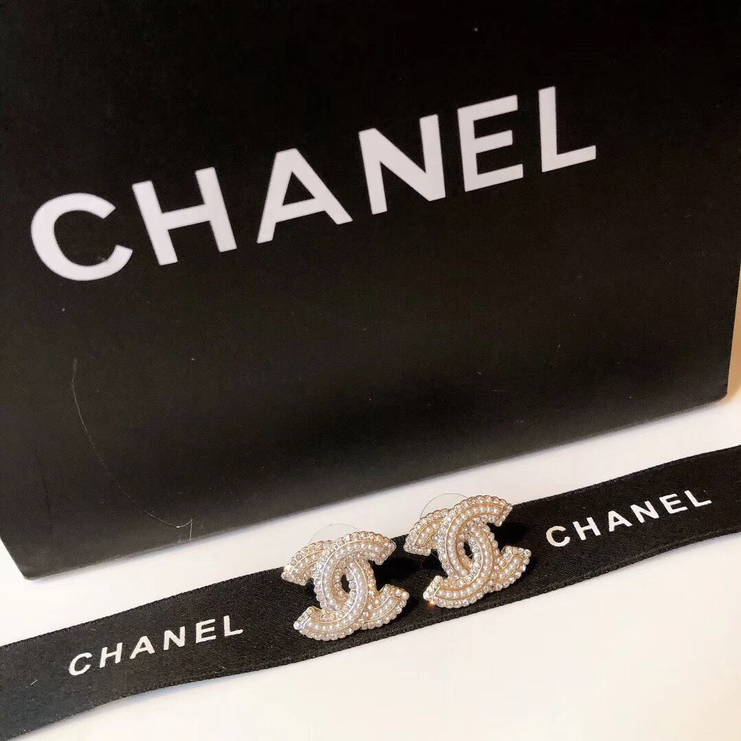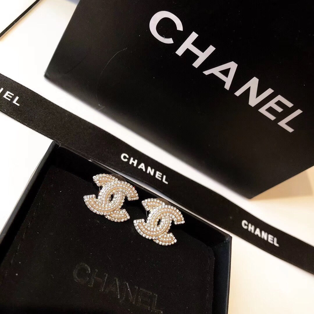 Name: Fashion Pearl Rhinestone Double C Stud Earrings