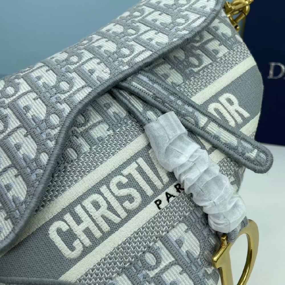 - The iconic saddle bag. Fully embroidered with the house's signature logo, this style features a "saddle" flap with a magnetic "D" closure in the shape of a saddle and antiqued gold accents on either side of the handle. The metal "CD" logo complements the legendary logo in style. Wear it as a tote or shoulder bag, or customize it with the optional shoulder strap.